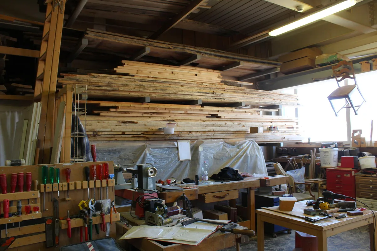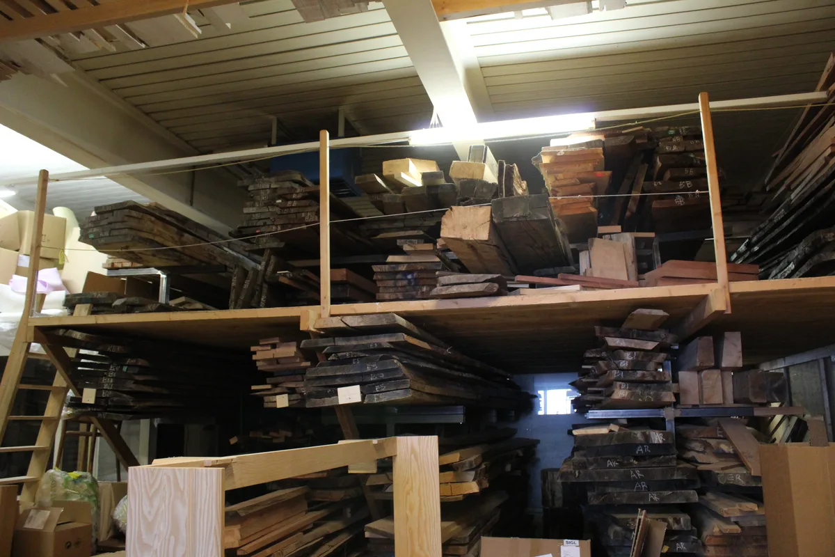 Ausserdem sorgt die grosse Auswahl an Holzarten für eine farbliche Vielfalt. Josef Dobler weist auf eine Wand, an der kleine Plättchen aus verschiedenen Holzarten hängen. Darunter ganz gewöhnliche wie Tannen- Ahorn oder Buchenholz, aber auch ungewöhnlichere wie Vogelbeeren-Holz. Eine ganz seltene Sorte, wie Dobler anmerkt.