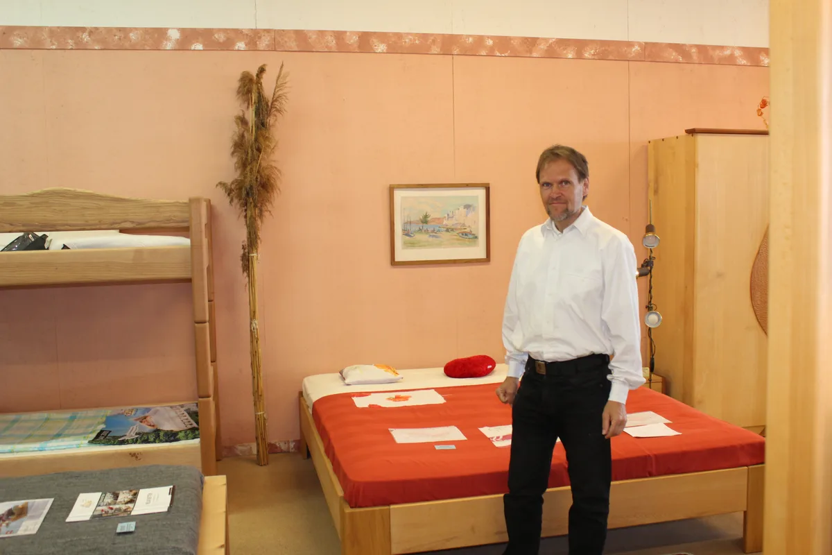 Der Duft von verarbeitetem Holz schlägt einem entgegen, sobald man das Naturbett-Center in Jona betritt. Josef Dobler verkauft hier seine Betten, Schränke, Kommoden und vieles mehr aus den verschiedensten Holzarten aus der Region. Einzel- und Doppelbetten reihen sich im Ladenlokal aneinander. Vom dunklen Nussbaumholz bis zum hellen Arven-Holz ist alles vorhanden.