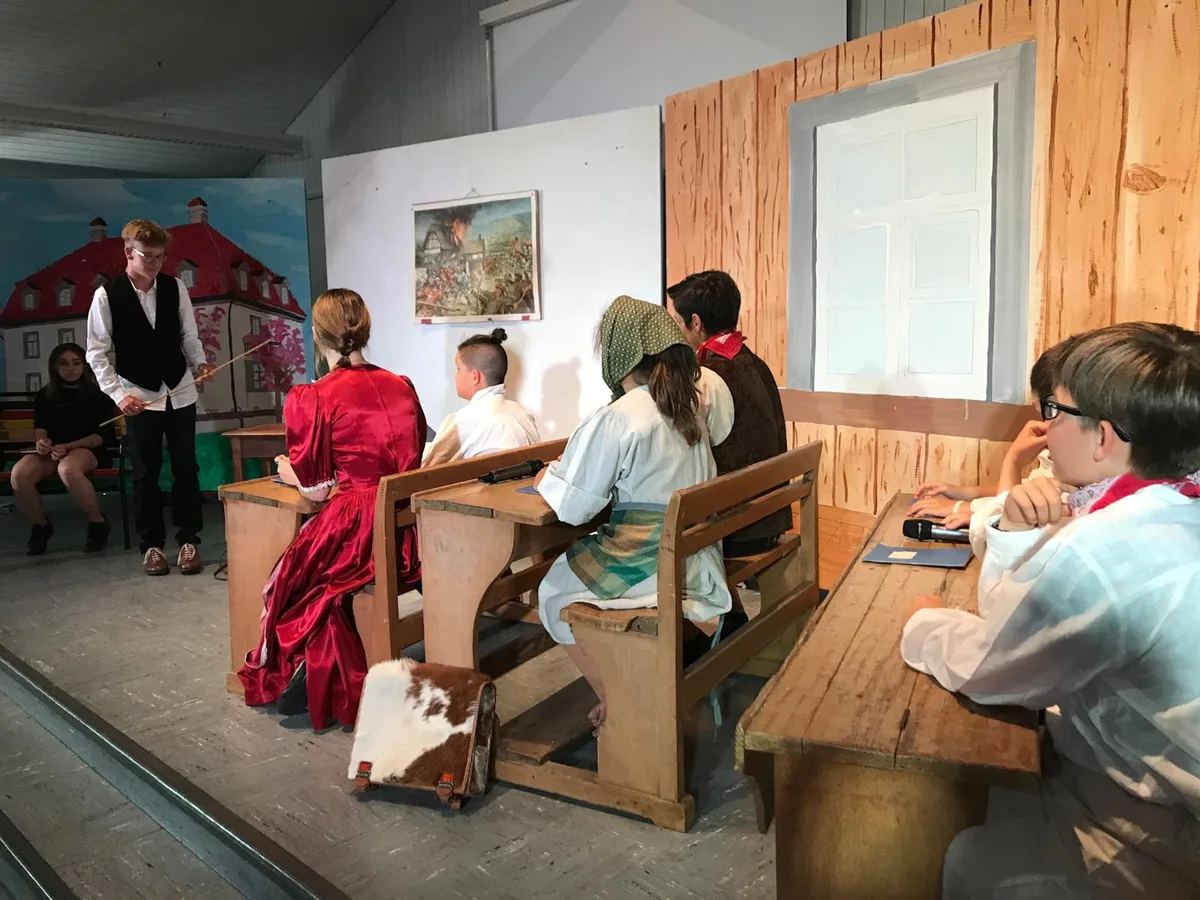 « Ihr habt es bis jetzt sehr gut gemacht, vielleicht geht es noch ein bisschen schneller » , wendet sich Mirjam Sackmann an die 24 Mittel- und Oberstufenschülerinnen und Schüler. Erstmals wird mit Kostümen und Headsets geprobt, kleine und grosse Komparsen zupfen an ihren Gewändern und setzen ihre Mikrofone auf.
