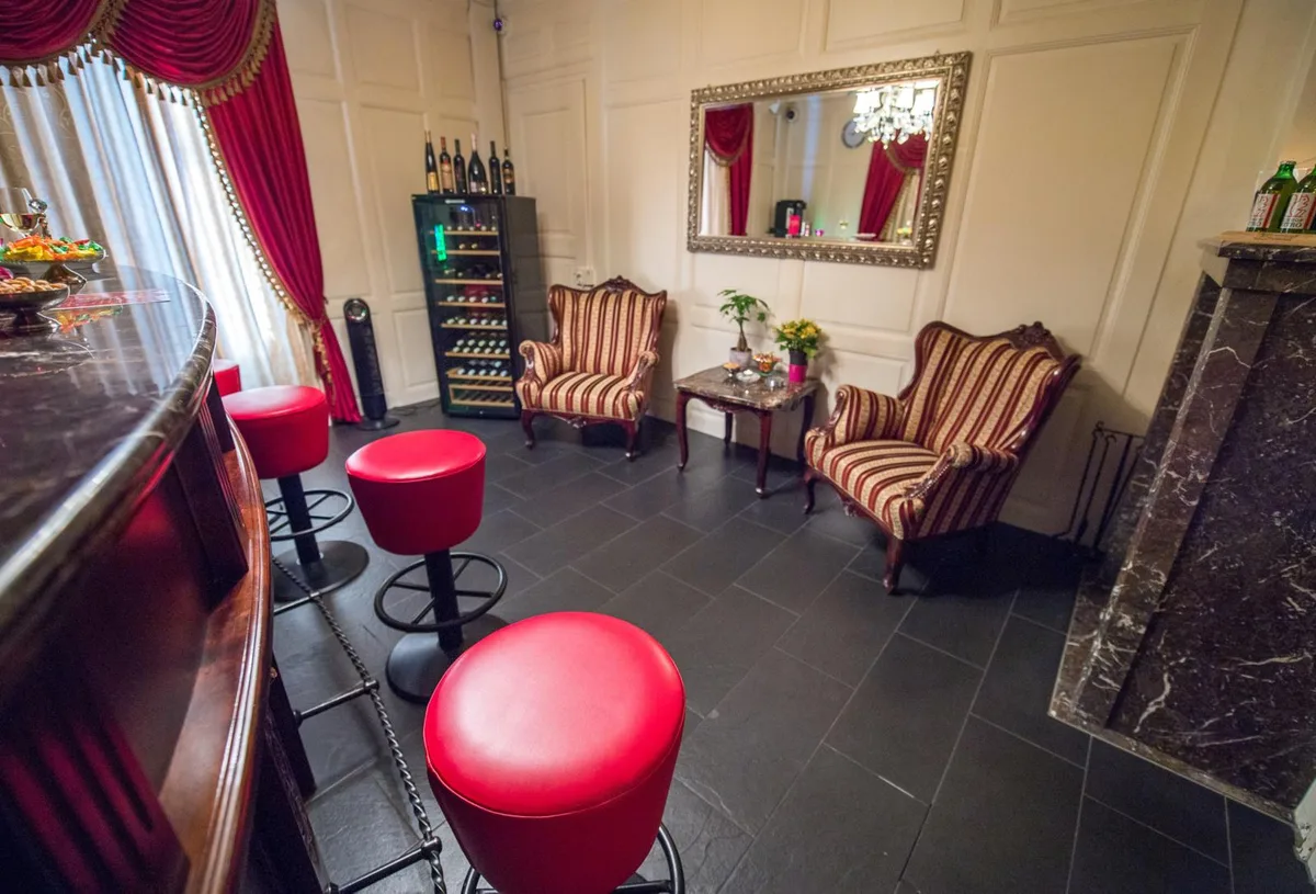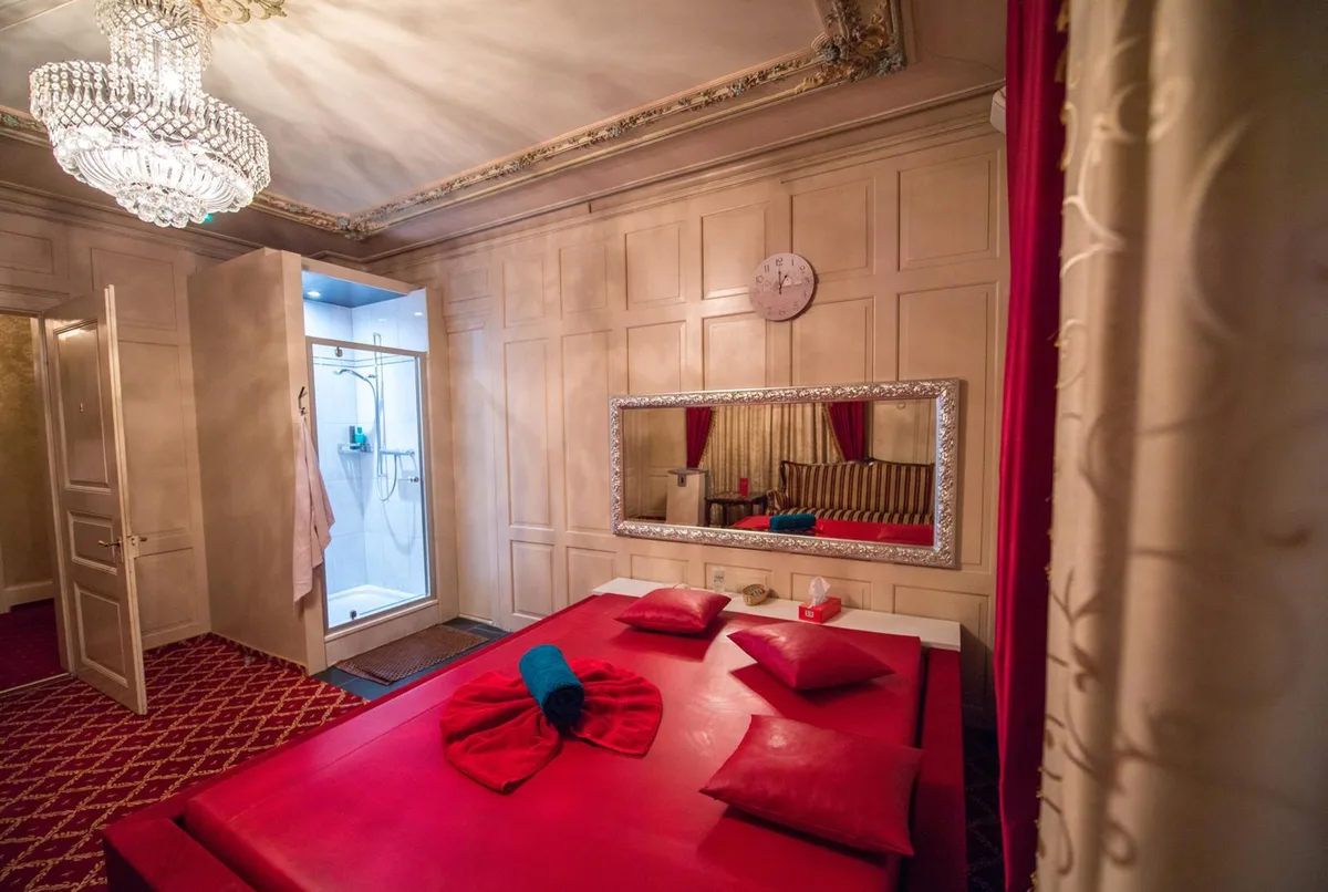 Besuch in der «Villa 45»: Bordeauxrote Teppiche, Barhocker aus rotem Leder, die Fenster mit schweren Vorhängen verhüllt. Auch die Betten in den sieben Zimmern sind aus rotem Leder, darauf liegt fein säuberlich frisch gewaschene Bettwäsche. Auf einer Ablage neben dem Bett liegen Nastücher, zwei Packungen Feuchttüchlein, eine Tube Gleitcreme.