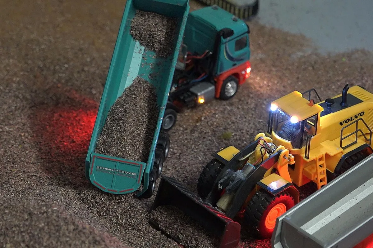 In einer Schuhschachtel liegen seine Miniaturen. Stundenlang werkelte er an ihnen. Immer wieder gingen filigrane Teile der Modelle kaputt. Dann setzte Hubschmid wieder von vorne an, bis er mit dem Resultat zufrieden war. Das wahrscheinlich komplizierteste Fahrzeug seiner Sammlung ist ein Welaki (Wechselladenkipper). Mit zwei Antriebswellen fährt der fünf Zentimeter lange Laster zur Mini-Baustelle und entlädt dort Sand. Hubschmid wird dieses Fahrzeug im Russiker Riedhus zum ersten Mal einer breiten Öffentlichkeit vorstellen. So einen fahrtüchtigen Mini-Welaki gibt es schweizweit sonst nirgends, so Hubschmid.