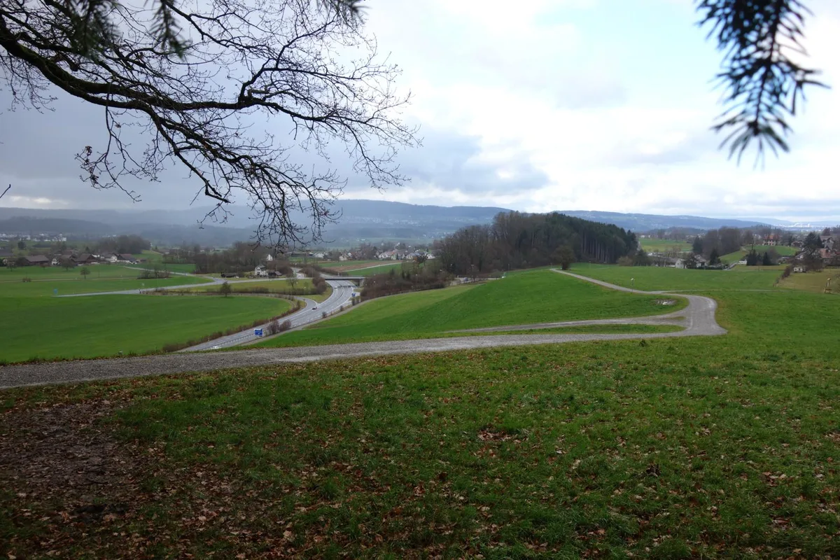 Der bewaldete Drumlin Zimmberg (Bildmitte) würde durchbohrt und die Oberlandautobahn dann bei Ottikon in die Forchstrasse geführt. (Foto: Christian Brändli)