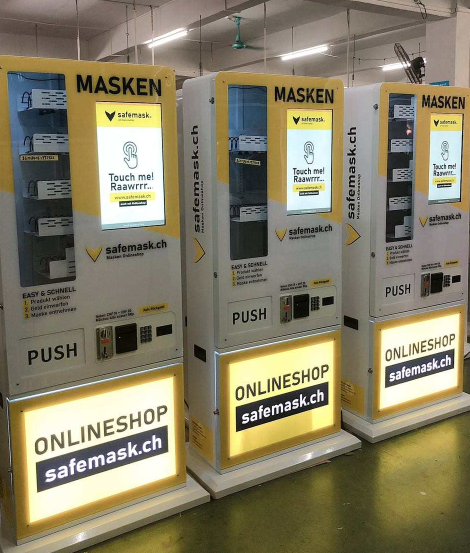 Es gäbe genug, die sich an der Angst der Menschen bereichern würden. Am Automaten von «Safemask» soll man für einen Fünfliber ein wiederverschliessbares Zehnerpack vom Maskentyp 2R beziehen können.