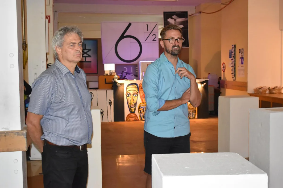 Den zweiten Teil der Führung bestritt Peter Baracchi, Mitglied des Künstlertrios «6 ½». Zur Ausstellung, die unter dem passenden Titel «In Transition» läuft, wurden 30 Künstlerinnen und Künstler ausgewählt. Sie stammen aus der Region Winterthur und Zürich. Baracchi bezeichnete «6 ½» als «nomadischen Kunstraum» der regelmässig temporäre Ausstellungsprojekte realisiert.