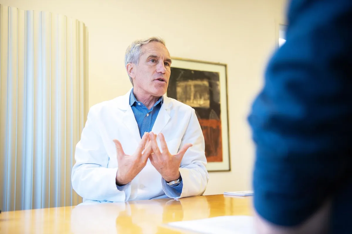 Ein Patient hat ein konkretes Problem, meistens einen Schmerz. Als Arzt muss ich dafür sorgen, dass er in seiner körperlichen Aktivität möglichst nicht eingeschränkt wird. Unser Leitspruch lautet: Training ist die beste Medizin. Aber wer etwa ein Rückenleiden hat, sollte gewisse Trainingsmethoden meiden. Meine Aufgabe besteht dann darin, gleichwertige Methoden aufzuzeigen oder ein neues Programm zusammenzustellen. Ziel ist immer, dass der Patient selbstständig weitertrainieren kann.