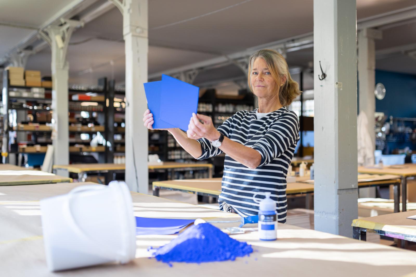 Morgenblau. Persischorange. Feenhaargrün. In der Domäne von Katrin Trautwein kommt es auf feinste Nuancen an. Ihre Manufaktur Kt.Color in Uster stellt hochwertige Farben für Architektur und Innenausstattung her. Während die Industrie ihre Produkte aus einem Dutzend Abtönpasten mischt, verwenden Trautwein und ihr Team rund 120 verschiedene Pigmente für die Farbherstellung – ein Drittel davon Naturpigmente.